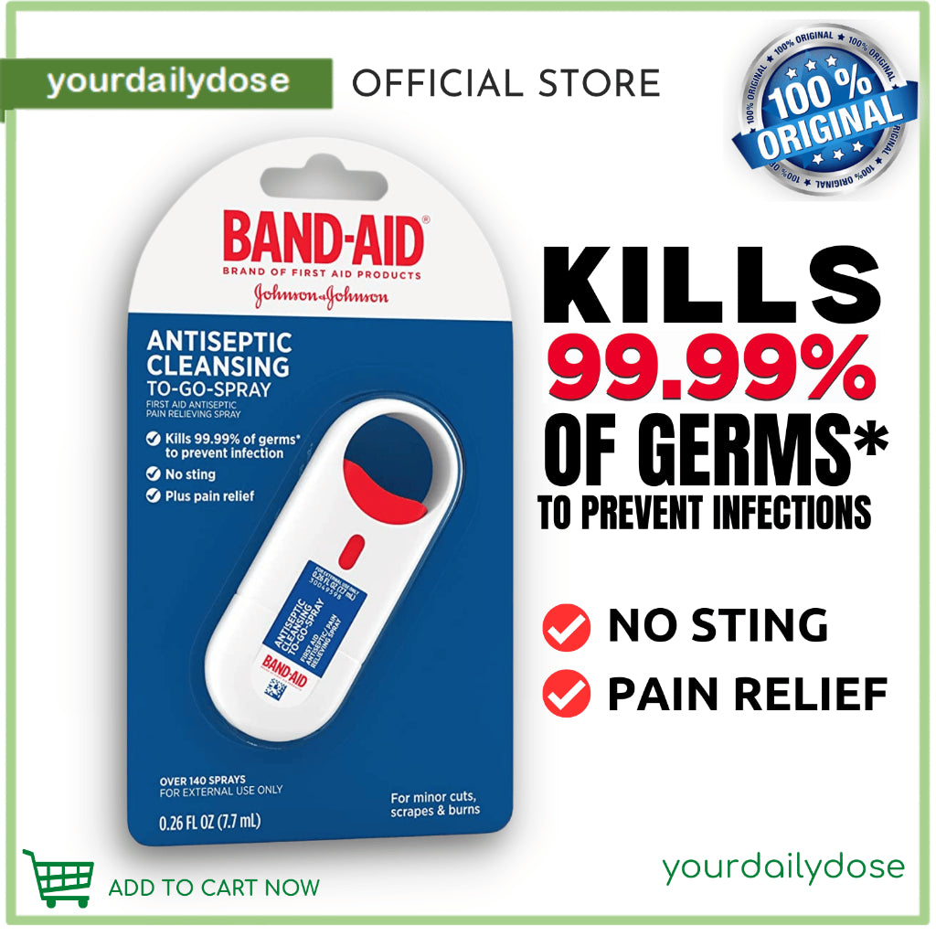 Band-Aid Brand Antiseptic Cleansing To-Go-Spray First Aid Antiseptic Spray Relieves Pain