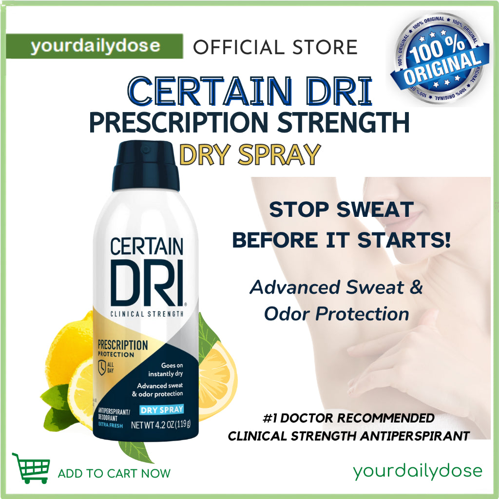Certain Dri Prescription Strength Antiperspirant Deodorant Dry Spray for Men and Women 119g