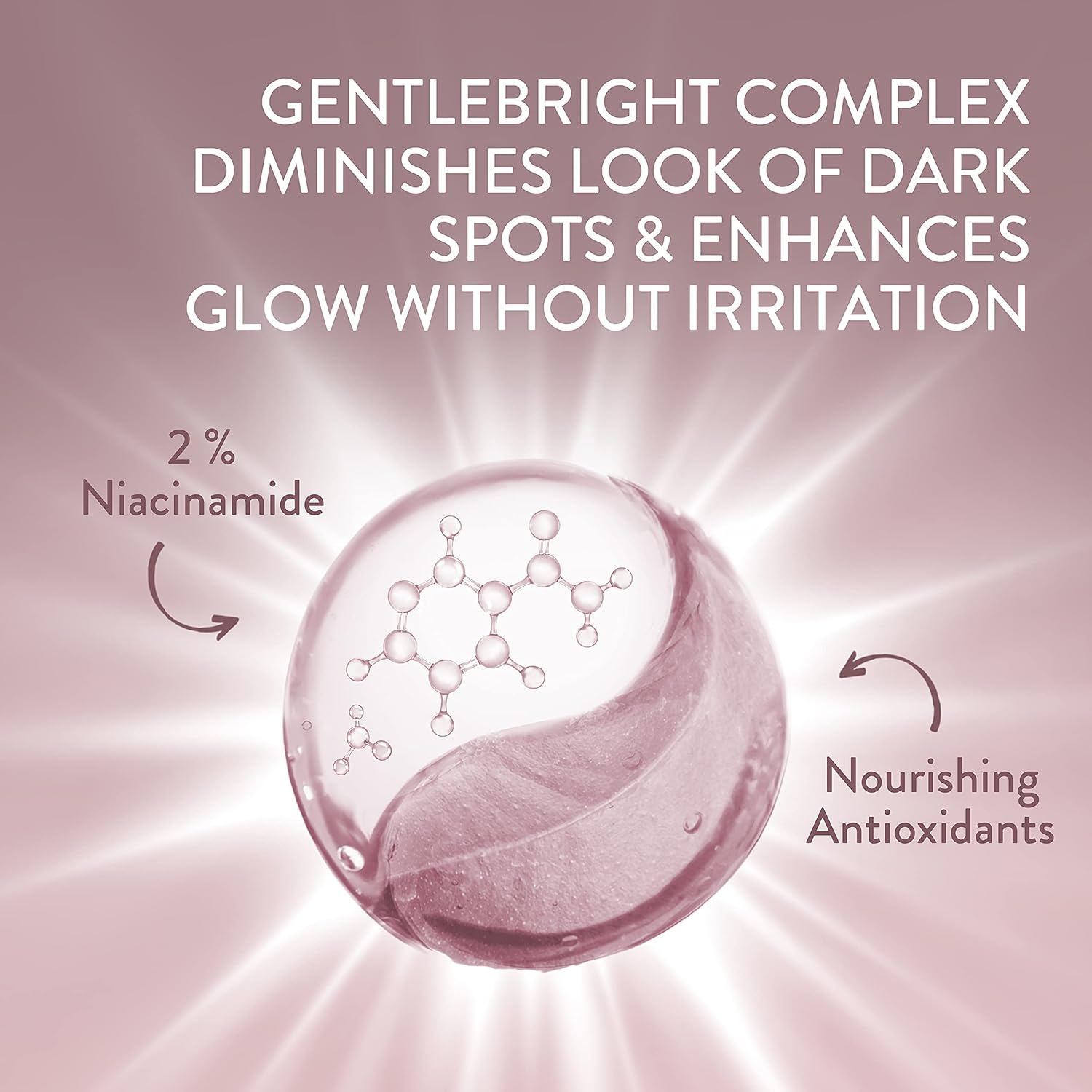 GentleBright COMPLEX: Powered by 2% niacinamide (vitamin B3) and nourishing antioxidants to reduce the appearance of dark spots, brown spots, age spots, hyperpigmentation, and post acne marks to even skin tone for a brighter, more radiant complexion