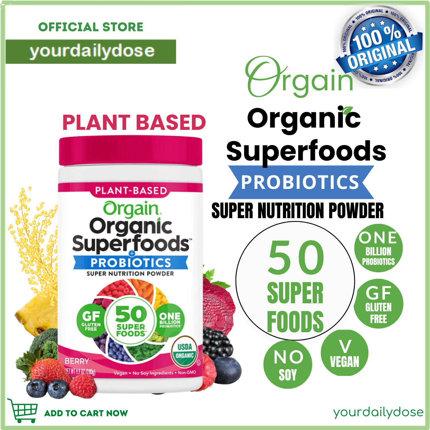 (Orgain) Organic Superfoods Probiotics Super Nutrition Powder Berry Flavored 280g