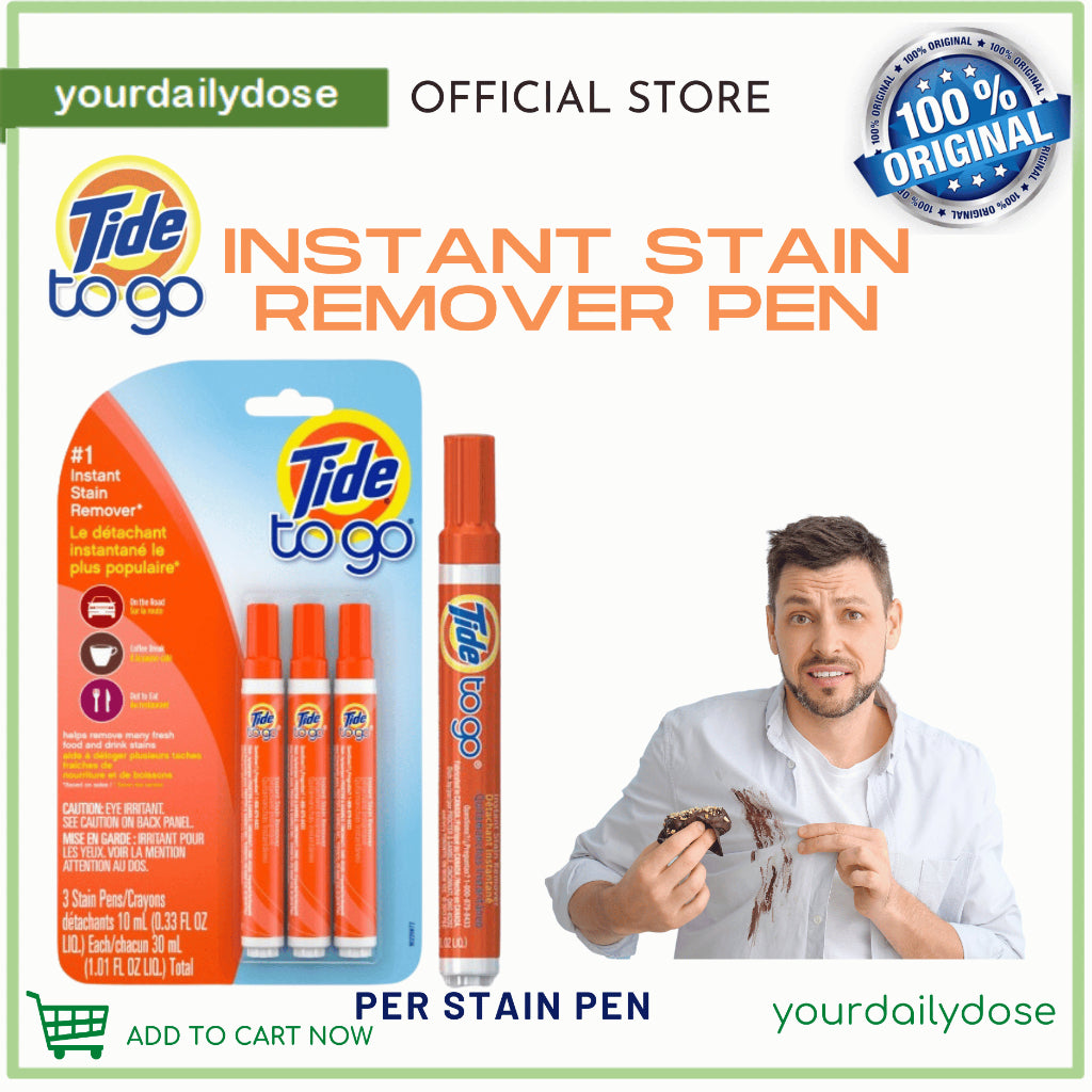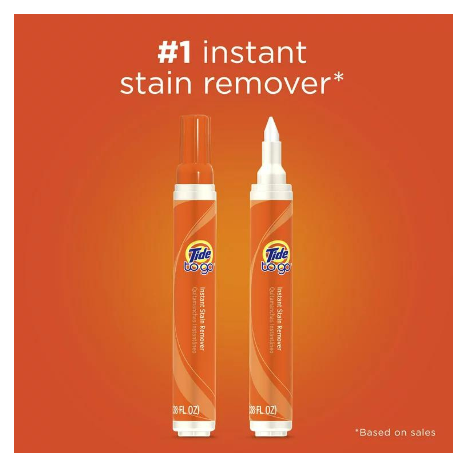 Make sure you’re prepared to face unexpected stains with the Tide to go stain pen. Tide to go is an instant stain remover designed to help eliminate some of the toughest fresh food and drinks stains on the spot. Thanks to its powerful cleaning solution, this easy-to-handle stain removing pen gets small stains out of your clothes before they set in. Best of all, Tide to Go travels easily to stop stains on the spot.